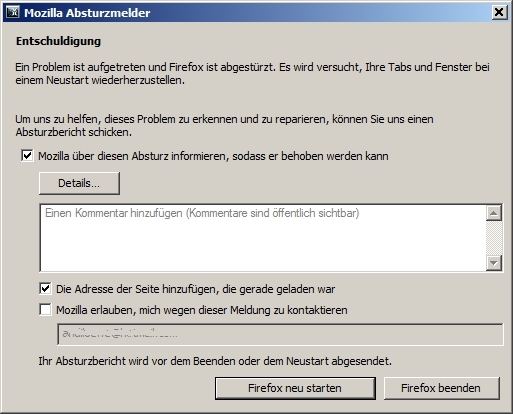 In der Zwischenzeit ist mir FF (neueste Version) auch noch abgestürzt. Sieht dann so aus: