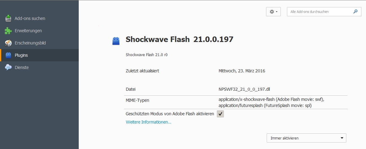Ich habe schon bei anderen FF-Usern gesehen, daß diese in den Plug-Ins sowohl ein Adobe-Flash-Player - als auch ein Shockwavr-Flash - Player - Plug-In haben. Worin besteht da der Unterschied ?
