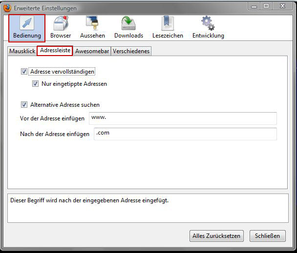 und wenn du dann in der Urlbar dieses Schlagwort eingibst kommt die Seite.....