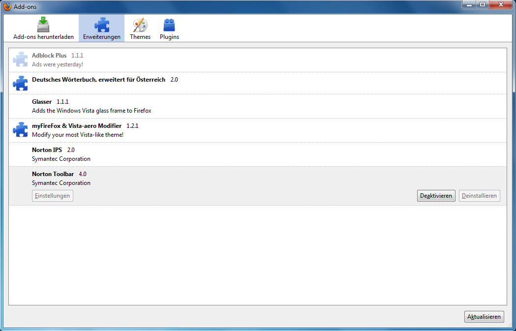 Hab mal einen Screenshot angehängt. Das an sich wäre kein Problem, aber nach dem Update hat sich der Arbeitsspeicherverbrauch meines FF etwa verdoppelt. Statt wie zuvor etwa 45 MB verbraucht er jetzt teils 90 - 100 MB.
