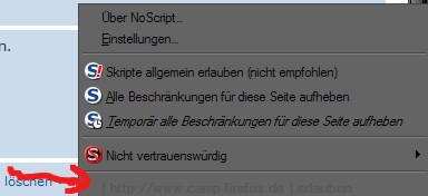 habe schon noscript deinstalliert, und wieder neuinstalliert.