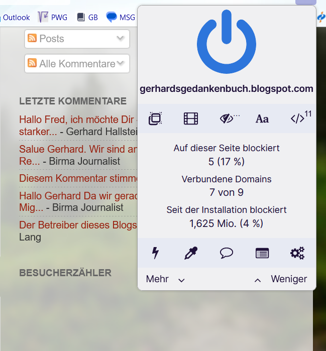 Jetzt werde ich mal schauen, wie ich den Besucherzähler wieder anzeigen kann, ohne dass die Finya-Seite wieder Werbung anzeigt.