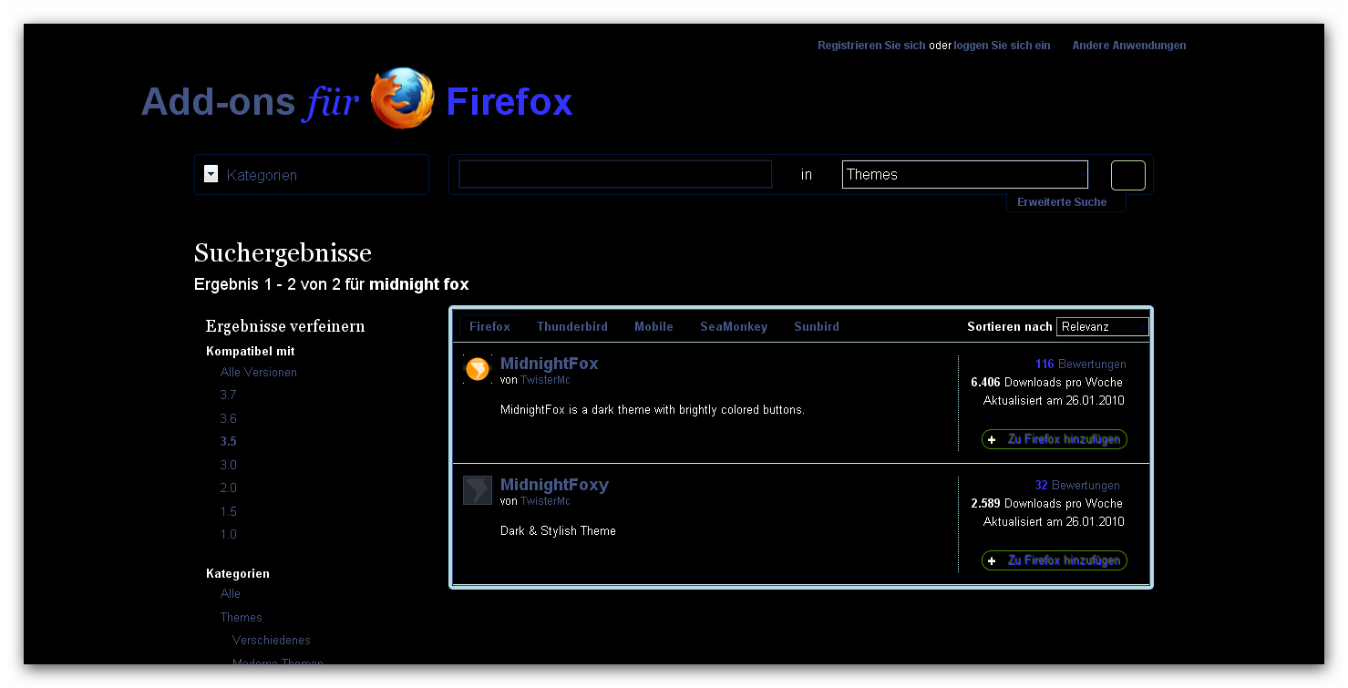 die Themes funzen plözlich nicht mehr! Bei wem ist das genauso und hat eventuell eine Lösung?? Habe die FF Version 3.5.7[attachment=0]Magical Snap - 2010.01.29 03.07 - 001.png[/attachment]