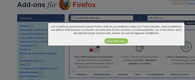 ich wollte ein neues add-on beim firefox installieren & hatte, nachdem ich über extras...alle add-ons ansehen & auf der mozilla-seite landete, folgende anzeige :