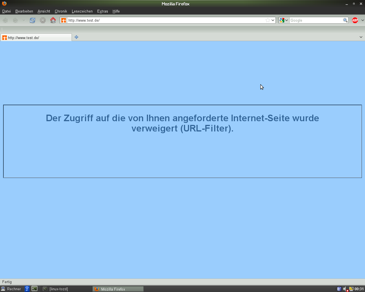 wir haben bei uns im Router so einige Seiten eingefügt die geblockt werden (für alle Teilnehmen in Netz). Sobald man diese Seiten besucht gibt Firefox die Meldung "Diese Seite... gefiltert" irgend so was. Naja kann man diesen Text irgendwie ändern?