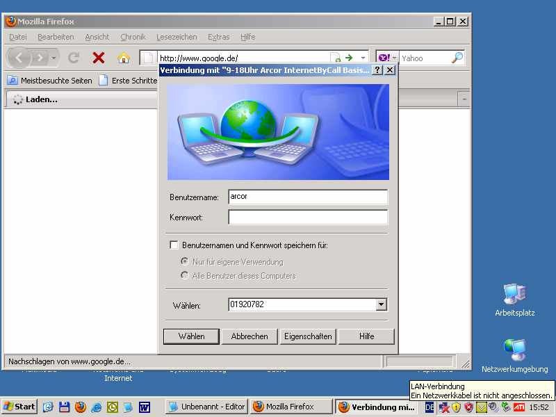 Es war immerhin kein Problem, unter dem alten Windows 98 mit dem alten Firefox 2 aus den normalen im System angegebeben DFü-Verbindungen die jeweils gewünschte auszuwaehlen.... siehe Bild meines letzten Beitrags.