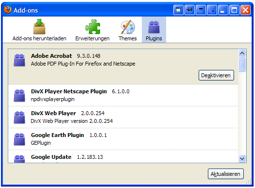 - Standard: http://www.mozilla.org/Installierte Plugins: (30)