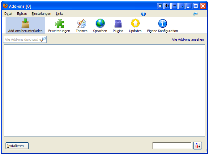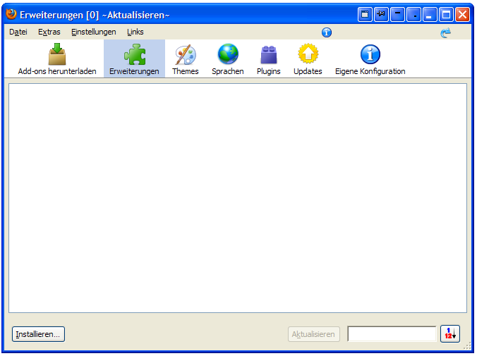 Was muss ich tun, damit der Erweiterungsmanager meine Addons, usw. wieder anzeigt?
