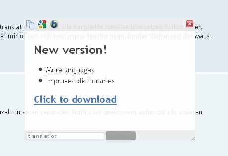 Ich war eigentlich immer sehr zufrieden mit der Erweiterung. Gerade weil Übersetzung aus verschiedenen Sprachen und Wikipedia in einem Fenster angezeigt wurden und man neben der Übersetzung auch direkt suchen oder in die Zwischenablage kopieren kann.