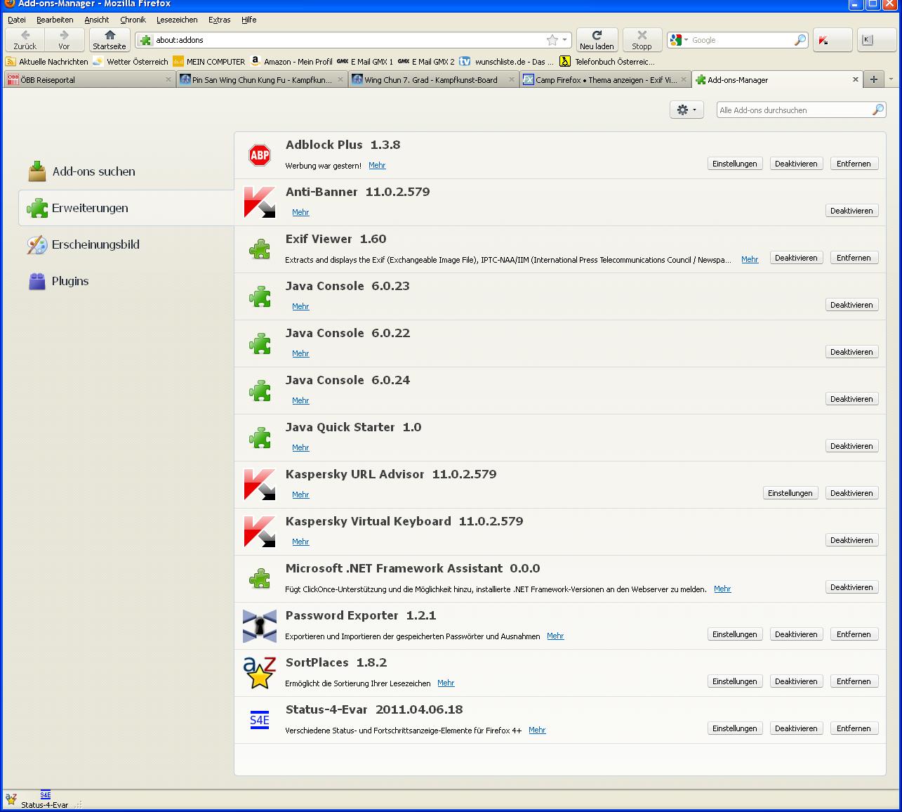 habe Firefox 4, kaspersky immer an der stört nicht und xp