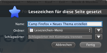 Ich habe gerade frisch upgedated auf Version 3.6.8, und seitdem reagiert das Texteingabefeld im Fensterchen (s. u.), das sich öffnet, wenn ich im Menü Lesezeichen auf "Lesezeichen hinzufügen" (cmd + D) klicke, nicht mehr auf Klicke mit der Maus.