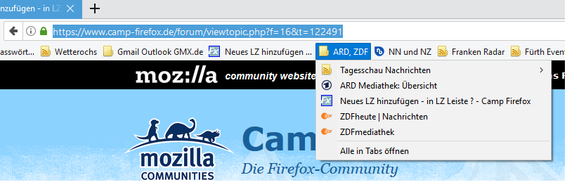 Ich würde mir in dem Fall ein zweites Profil erstellen und dort den Ordner mit den 87 Lesezeichen übertragen. Mit dem Startzusatz -p -no-remote PROFILNAME kann man dann gleichzeitig mit zwei Firefox arbeiten. Gute Anleitung zum einrichten gibt's von Roadrunner http://www.at2907.net/allgemein/index.php#mehrver