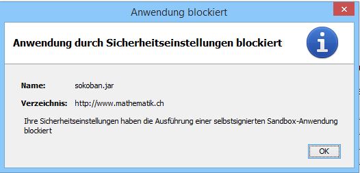 auf der Seite mathematik.ch sind auch verschiedene Spiele in Java. Wenn ich Java aktiviere kommt die obige Fehlermeldung.