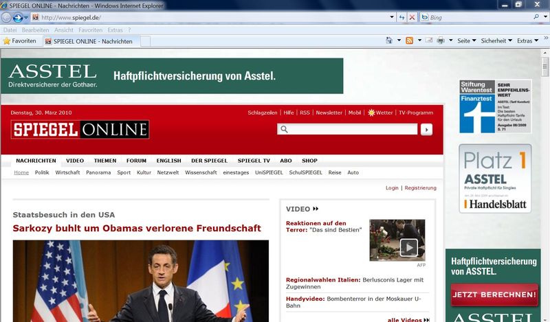 Und noch ist mir etwas aufgefallen. Wenn ich mit dem fox spiegel.de aufrufe, ist ganz oben ein dicker Balken mit Werbung.