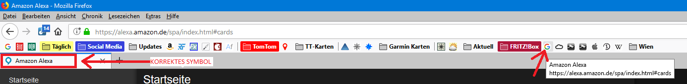 Die Reiter stehen nun unter der Lesezeichenleiste.