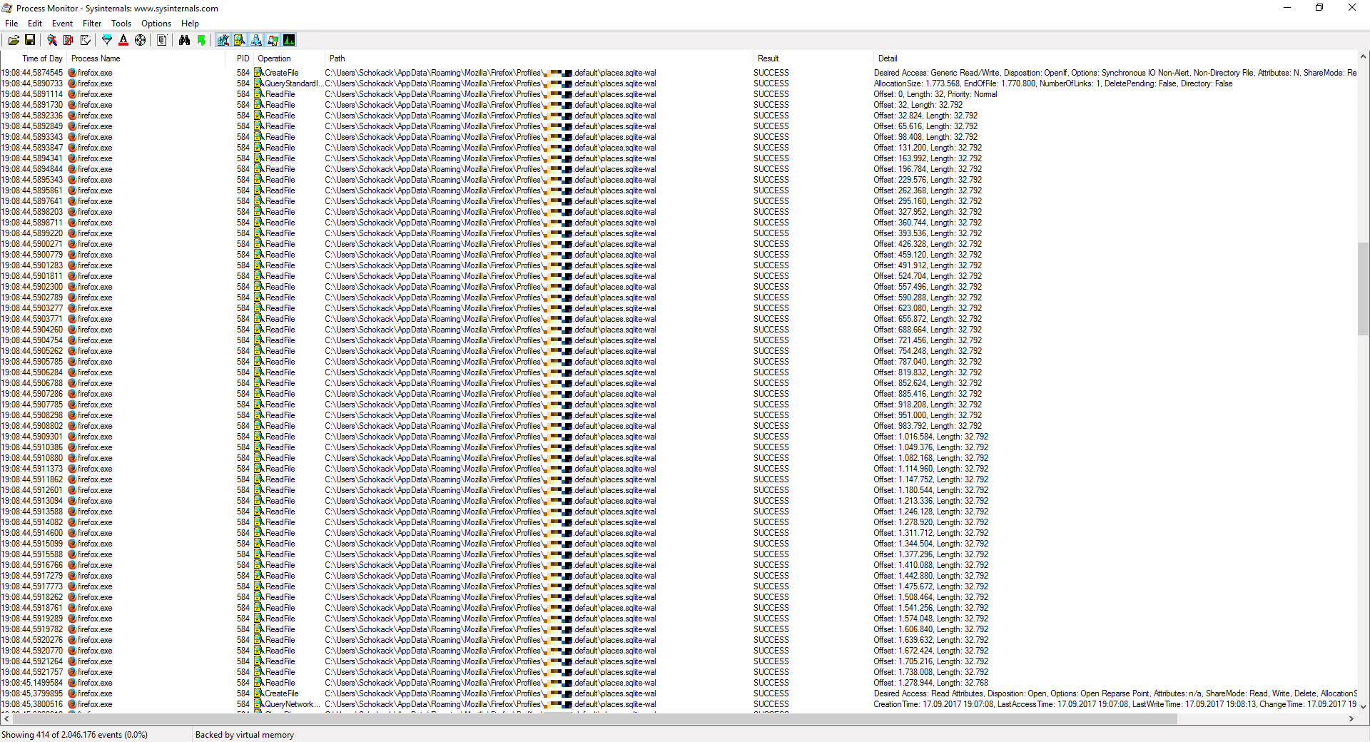 aktuell hat die Datei in dem Ordner 2370kB - aber laut ProcessMonitor passiert das im RAM