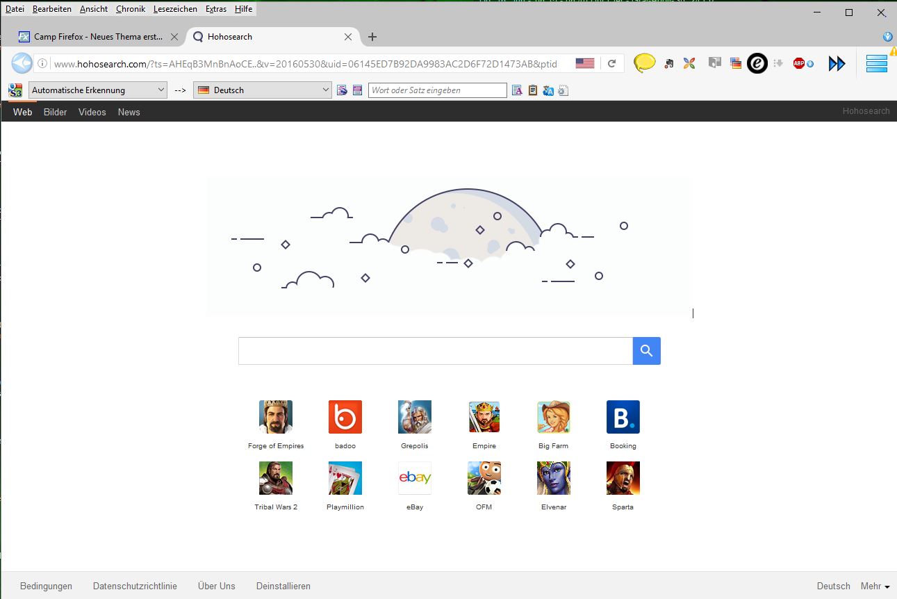 Ich weiß nicht wo die herkommt oder wie ich die wegbekomme. Unter Addons und Sidebar und Symbolleiste ist auch kein Eintrag mit hohosearch vorhanden.
