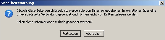 ist es möglich die unten gezeigte Sicherheitswarnung zu deaktivieren? Ich meine, sie tritt auf, wenn man auf einer verschlüsselten Seite etwa eine Suchanfrage abschickt, die dann über unverschlüsselte Kanäle umgeleitet wird. Eine Beispielseite findet sich hier: https://hmv.com/hmvweb/home.do. Dort bitte mal oben eine Suchanfrage starten.