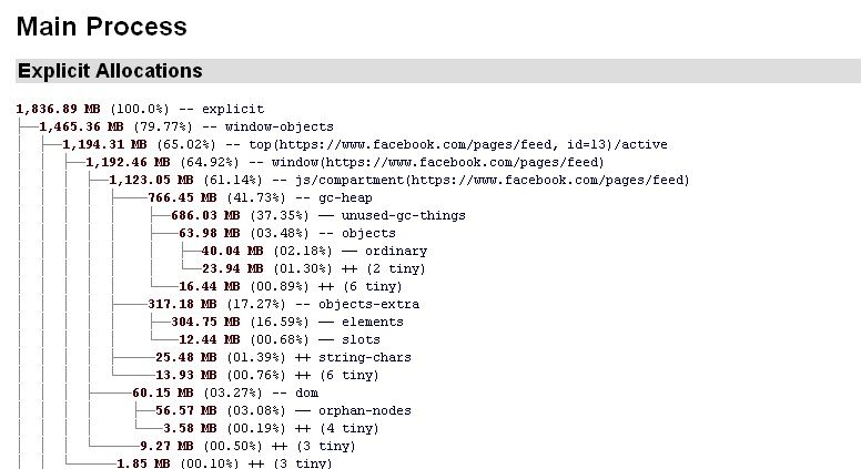 Auch ein GC und CC bei about:memory lässt den Speicherverbrauch von Facebook nicht schrumpfen.Ich bin mir 100% sicher, dass ein Neustart des Firefox das Problem erst mal behebt. Aber irgendwann nimmt sich facebook wieder so viel. Was kann man dagegen machen?