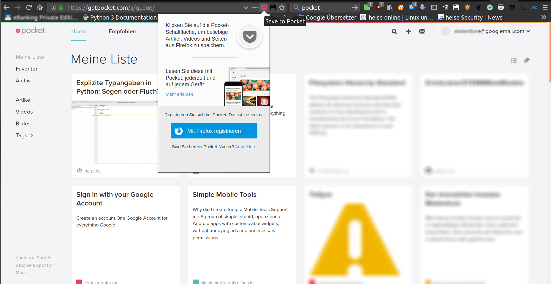 - Firefox geöffnet und mit dem Share Button an Pocket gesendet.