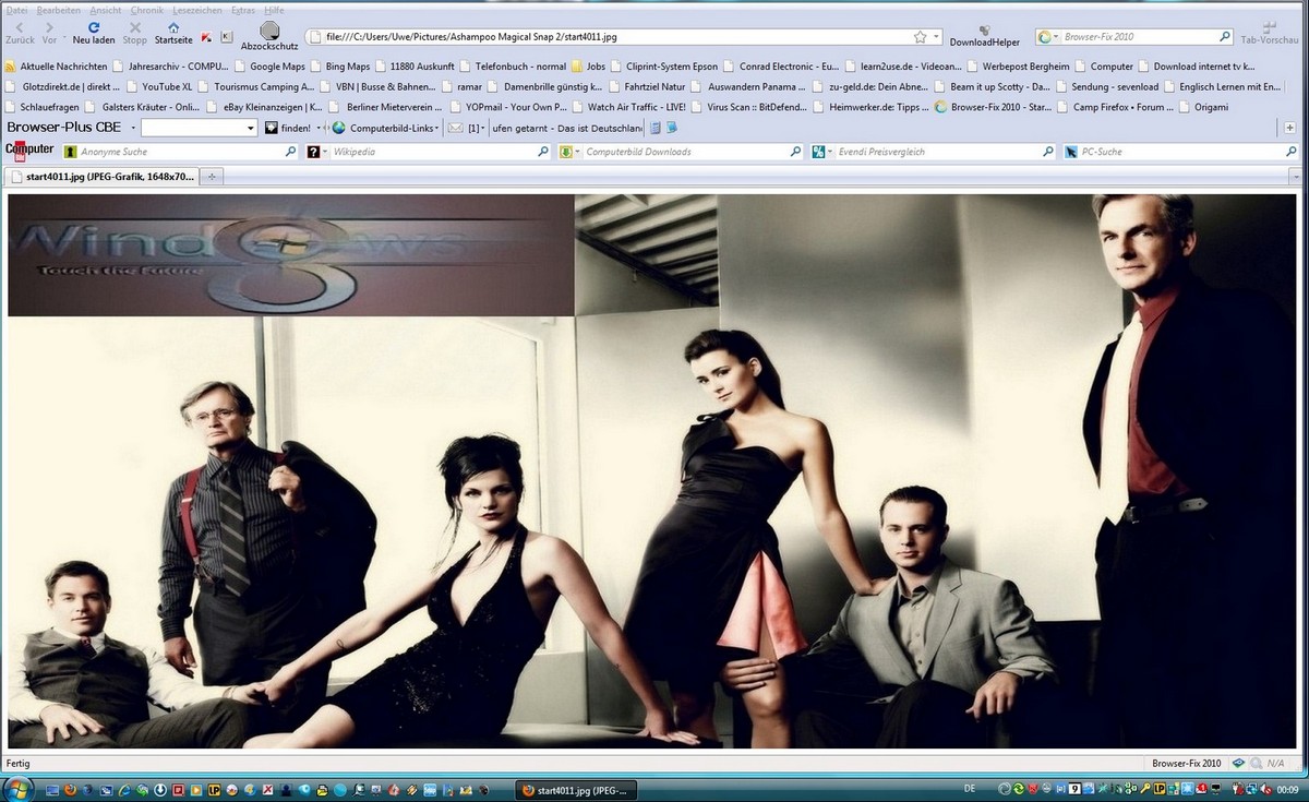 Als Startseite unter "Extras" "Einstellungen" habe ich folgenden Link eingetragen und das Bild der Größe nach entsprechend angepaßt. file:///C:/Users/Uwe/Pictures/Ashampoo Magical Snap 2/start4011.jpgMeine Startseite, wenns interessiert, habe ich hier mal als Anlage angehängt. (Wegen der Größenbeschränkung