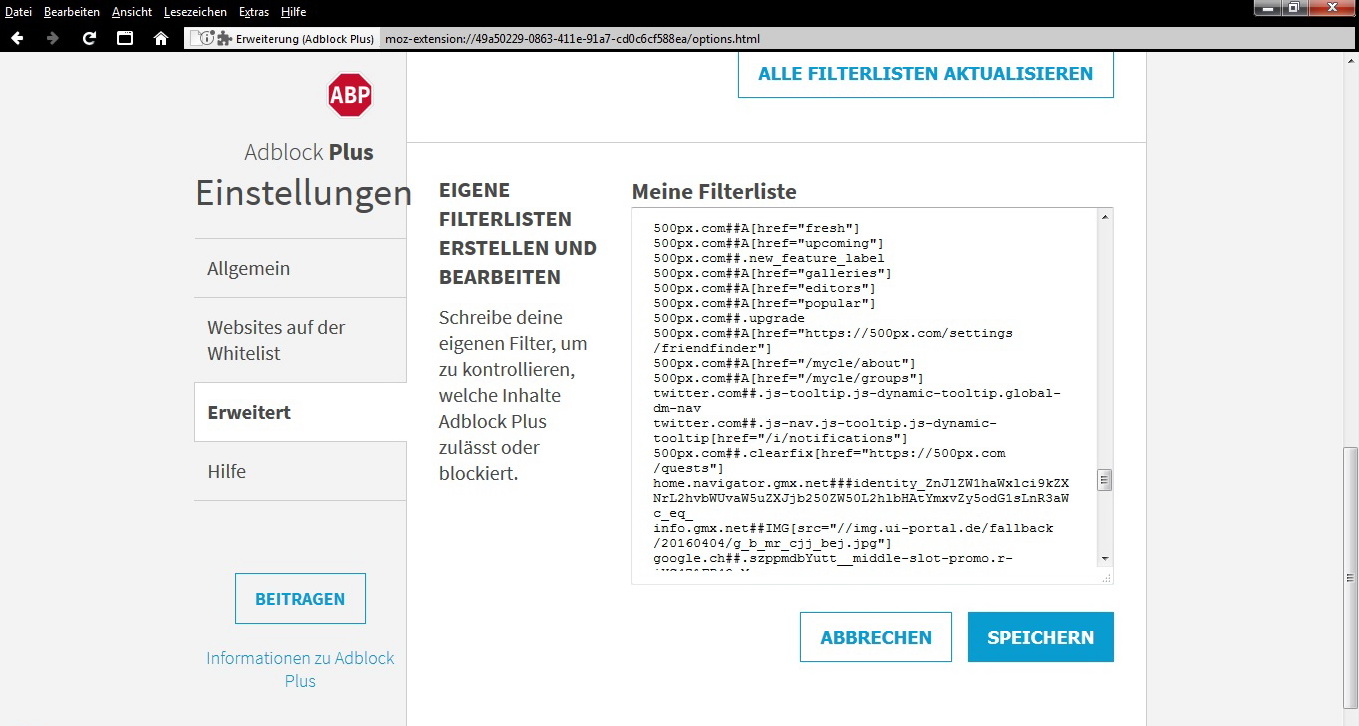 Im Moment bleibe ich wohl noch beim FF 56 und habe bezüglich des neuen Adblock Plus 3.0.1 eine Frage: