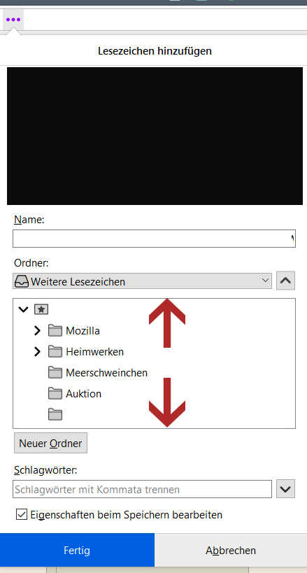 wenn man die 3 Punkte in der Adressleiste anklickt um ein Lesezeichen hinzuzufügen, und man nichts anklickt.