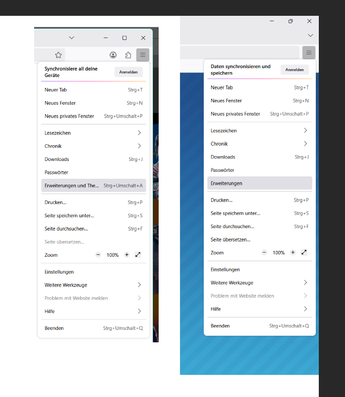 Wenn man sich den Hintergrund genauer anschaut, ...Wo ist der Button "Erweiterungen"?