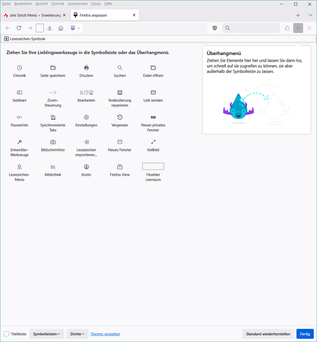 TIPP: Ich hab dafür ein Lesezeichen (about:addons) gesetzt.