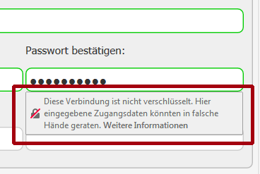 • Hinweis für Verbindung nicht sicher