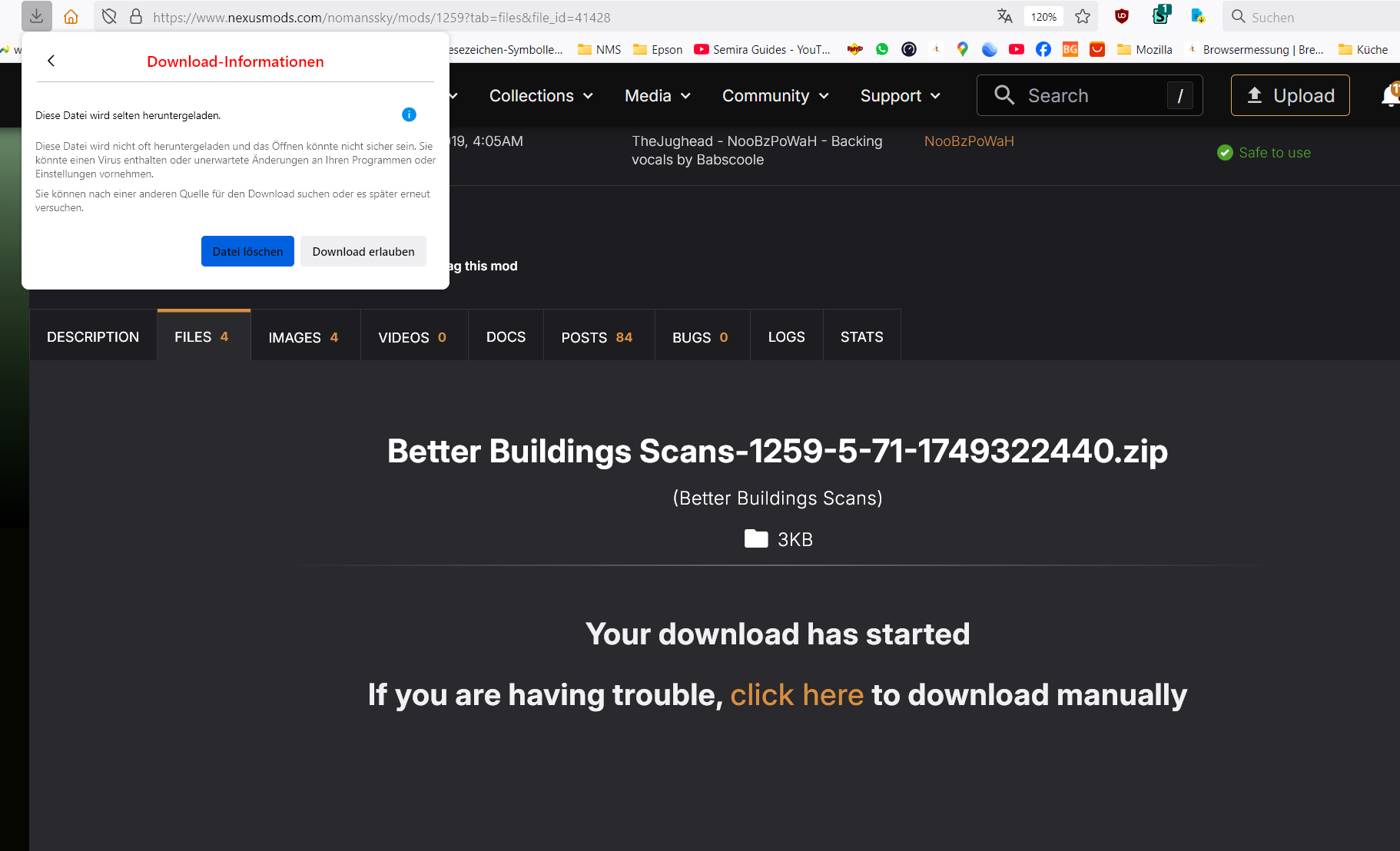 Der Button „Download erlauben“ ist doch nicht zu übersehen, oder?