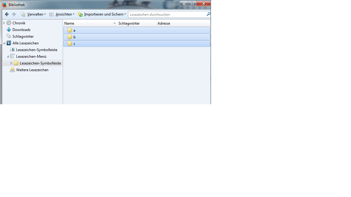 Sortiert in Lesezeichenleiste C B A und nicht A B C