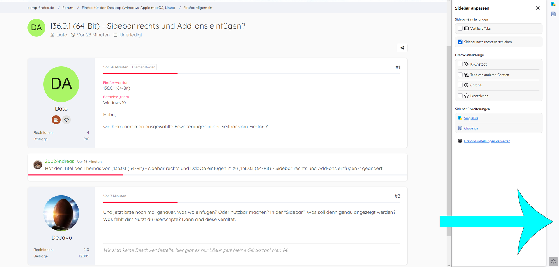 wie bekommt man ausgewählte Erweiterungen in der Seitbar vom Firefox ?