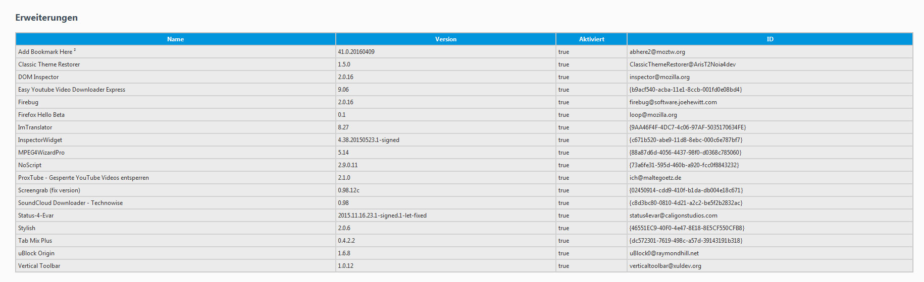 ich benutzte den Fux Version 45.0.1 und die Addons seht ihr ja