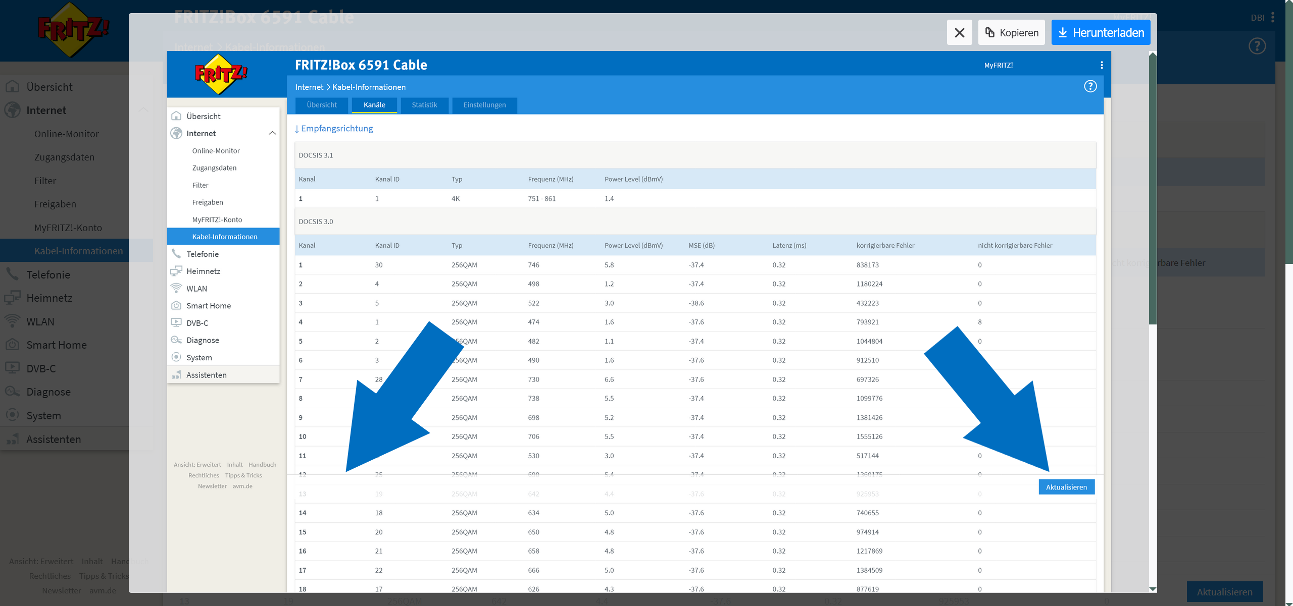 wenn ich auch meiner Fritzbox die komplette Seite Screenshoten möchte kommt irgendwo in der mitte noch folgendes hinzu was teilweise die Werte überdseckt.