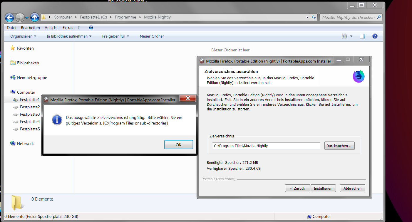 kann mir mal jemand sagen wie man den Portable Nighly auf Festplatte C installieren kann bei Windows ?