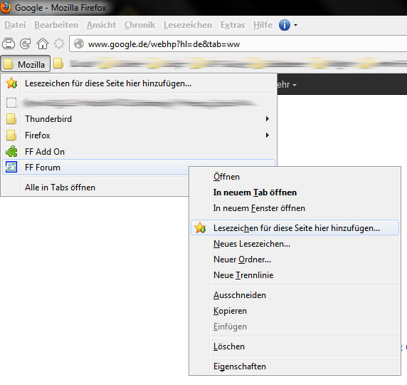 als beispiel habe ich mal FF Forum und Leesezeichen für die Seite hier hinzufügen... Markiert.