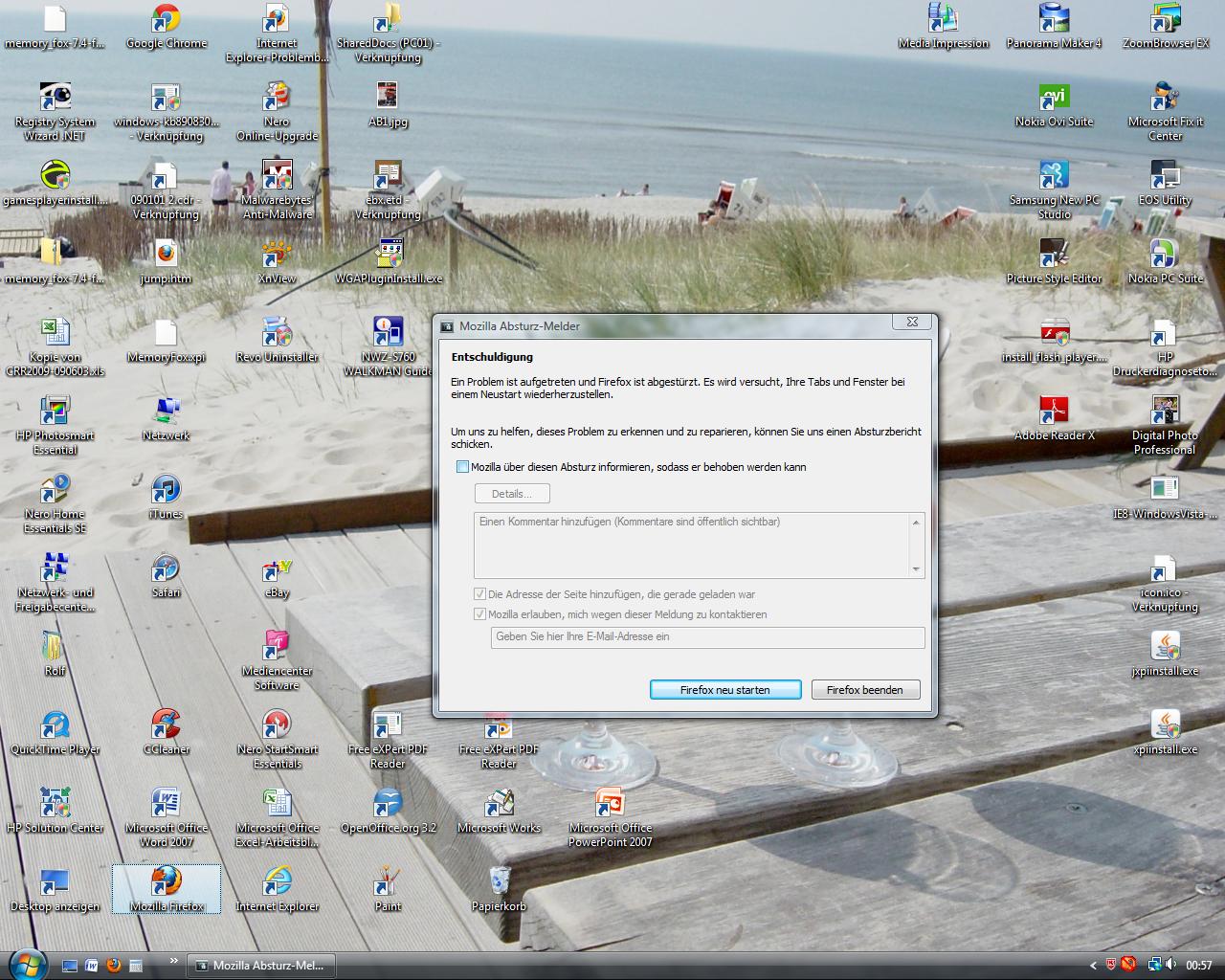 Das Problem mit dem "Absturzmelder" scheint ja offenbar nur eine Randerscheinung zu sein. Sehr wahrscheinlich gibt es weit größere Probleme. Sonst wäre nicht dieses Konglomerat griffbereit auf dem Desktop zu finden.
