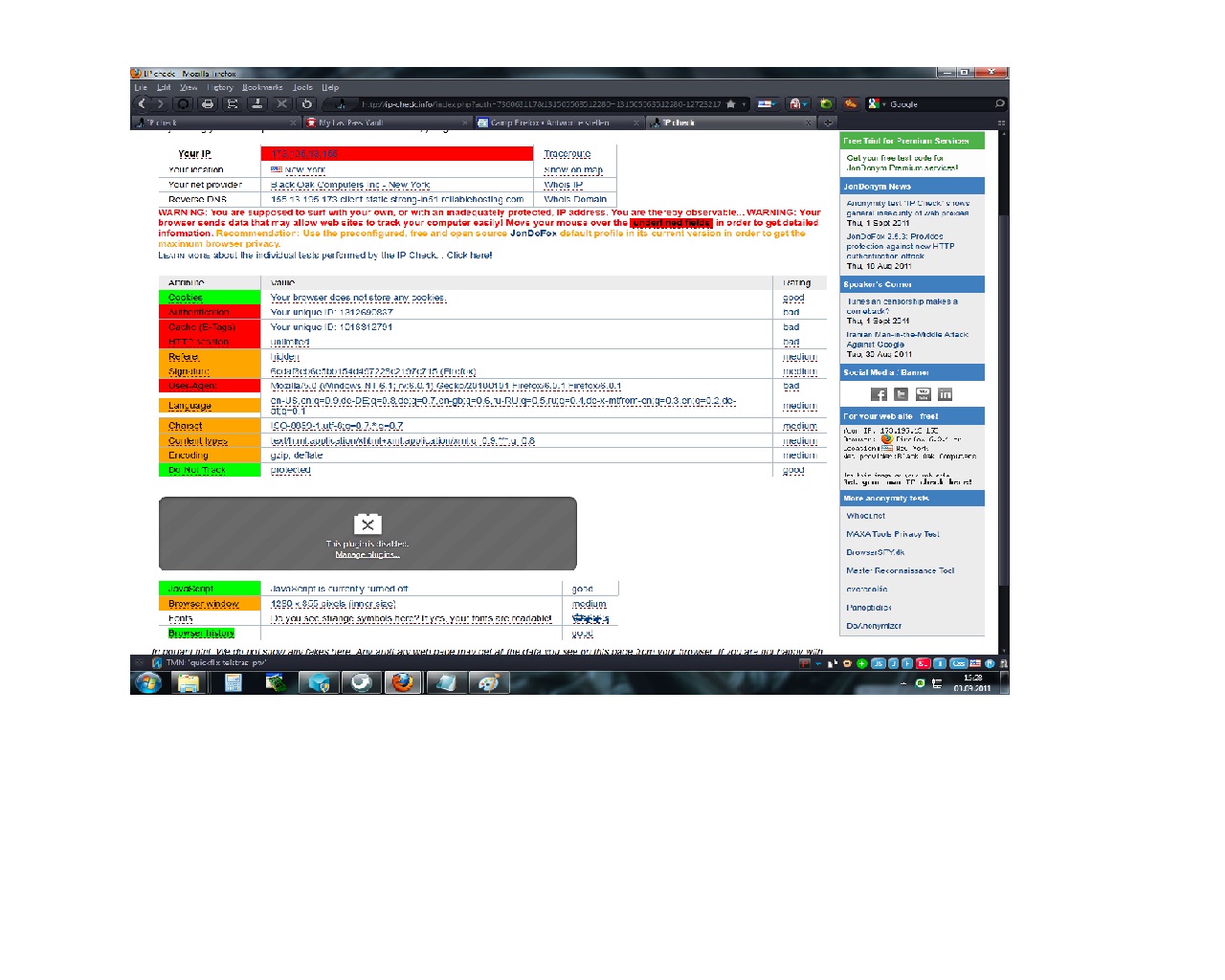 Von den genannten Punkten konnte ich jetzt noch den "User Agent" deaktivieren mit der Extension: "UAControl". Ist zwar noch immer auf "Rot" bei dem Check auf der JonDo Seite, aber UA wird keiner mehr angezeigt! Ist zwar ein bisschen nervig den UA bei den Seiten die explizit danach verlangen, diesen hinzuzufügen in den Einstellungen, aber ansonsten wenn es zu meiner Sicherheit beiträgt, ist das auch zu verschmerzen...