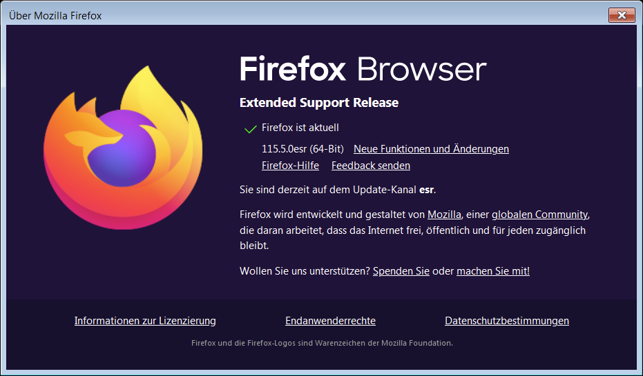 Und wenn mein Firefox nicht aktuell ist, wieso steht dann im Versionsfenster "Firefox ist aktuell!"?