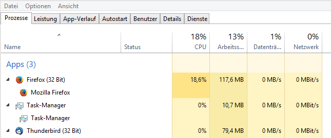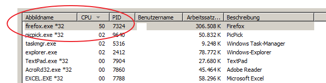 Prozess: firefox.exe noch vorhanden, mit hoher CPU-Last: