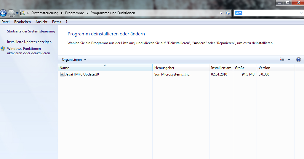 Bei Java Console kein Deinstallation bzw. entfernen Button.Manuell deinstallieren: