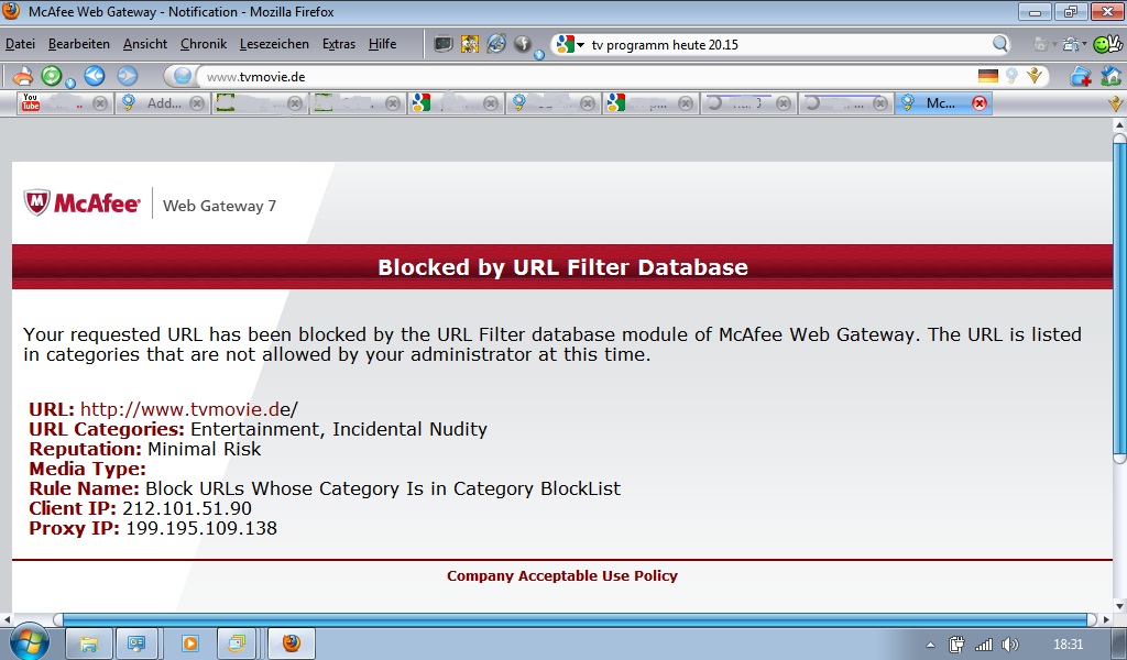 Ich wollte die Seite http://www.TVMovie.de auf rufen doch sie wurde blockiert. Folgender Text ist zu lesen