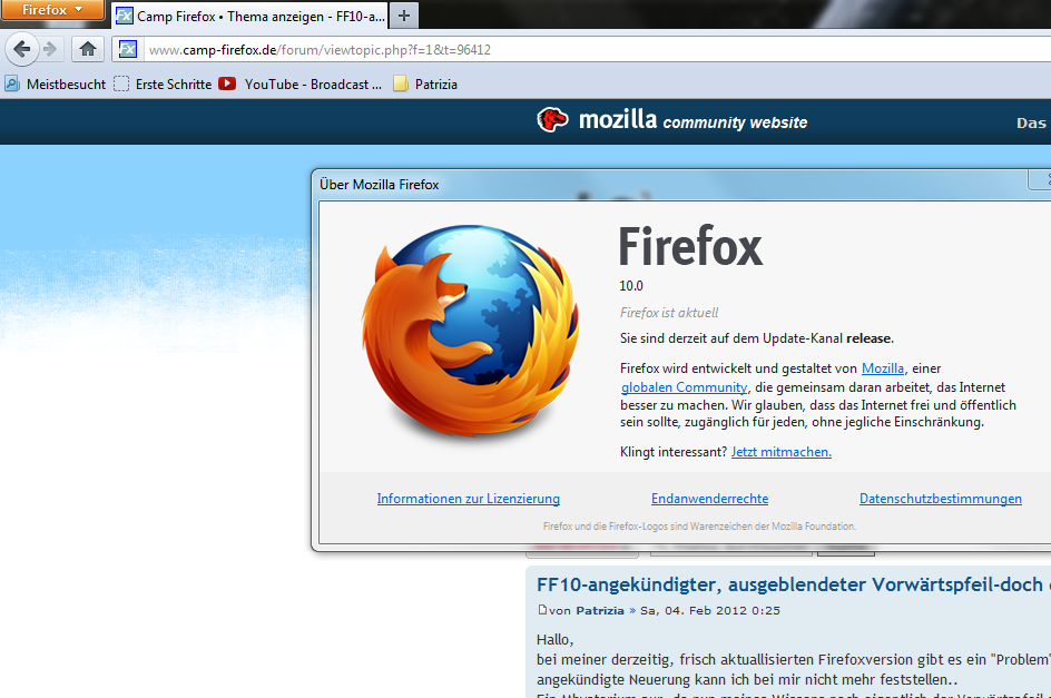 welche Version vom Firefox ist auf dem Screenshot zu sehen? Es handelt sich da schon um die upgedatete Verion 10.0, oder?