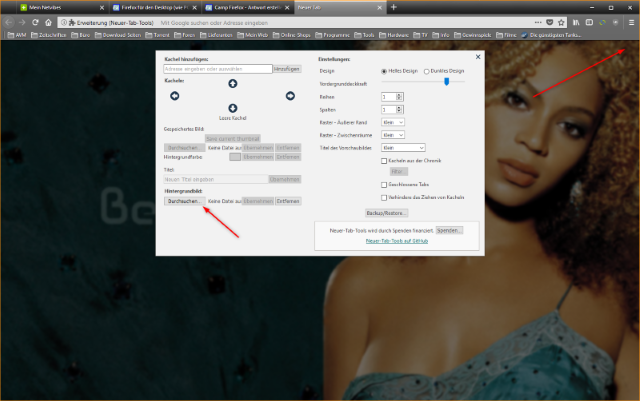 (https://addons.mozilla.org/de/firefox/addon/new-tab-tools/)Damit kannst du jedes beliebige Bild als Hintergrund einbinden.