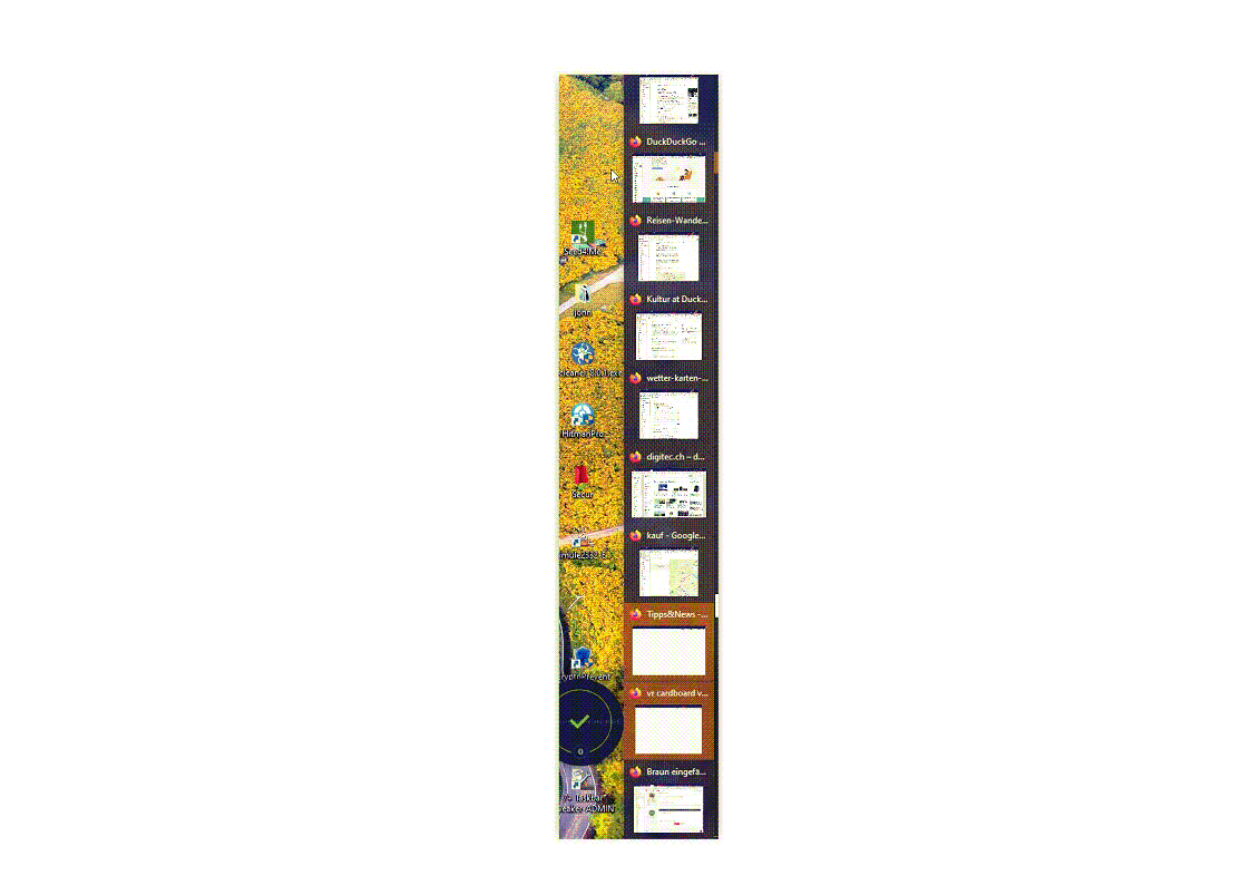 Noch eine Bemerkung zu den vielen Tabs: Ja, ich muss endlich wieder mal aussortieren, so jeden Fünften kann ich wohl löschen. Aber es ist (für mich) so, wie es Sören Hentzschel geschrieben hat, die Fenster sind thematisch gegliedert, und wenn ich weiss, in welchem Fenster ich suchen muss (und innerhalb der Fenster herrscht auch noch eine grobe Ordnung), finde ich den/die gewünschte Tabs relativ sicher und rasch. Insbesondere die (neu?) verfügbare %-Suche hilft dann noch zusätzlich.