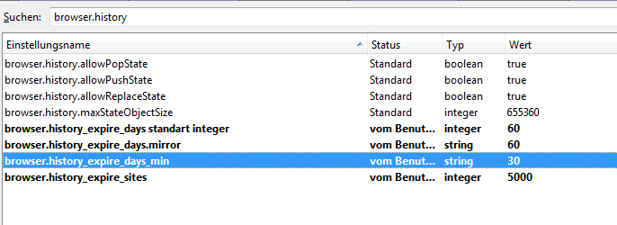 Ich hab eigentlich ein ähnliches Anliegen, wie lausana -> also die Veränderung des Verlaufs, allerdings möchte ich nicht weiter zurück gehen als 180 Tage, sondern weniger Tage einstellen (60 Tage), da mir der Verlauf sonst immer ordentlich zumüllt.