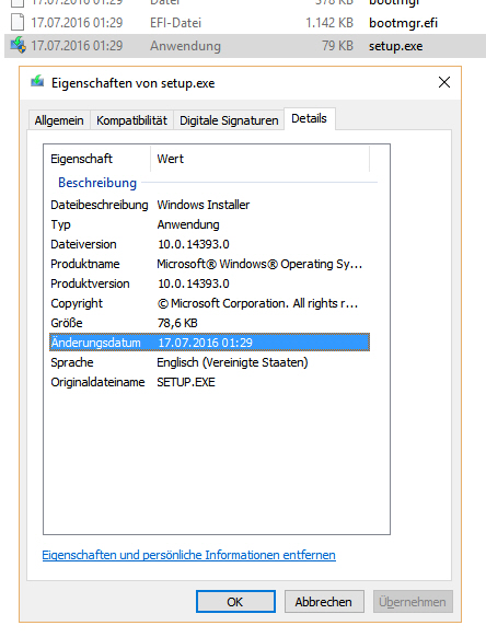 win10 Update auf Version 1607 zig Mal probiert --- auch manuell --- alles wird installiert / Neustart / alte Version ist wieder drauf !!! (trotz neu aufgesetztem System!!!).
