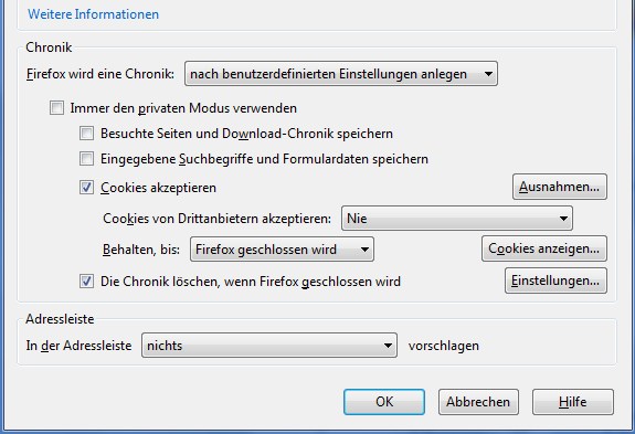 kann ich eigentlich den FX so einstellen, das Cookies nur für eine ausgesuchte "Adressen" behalten werden?