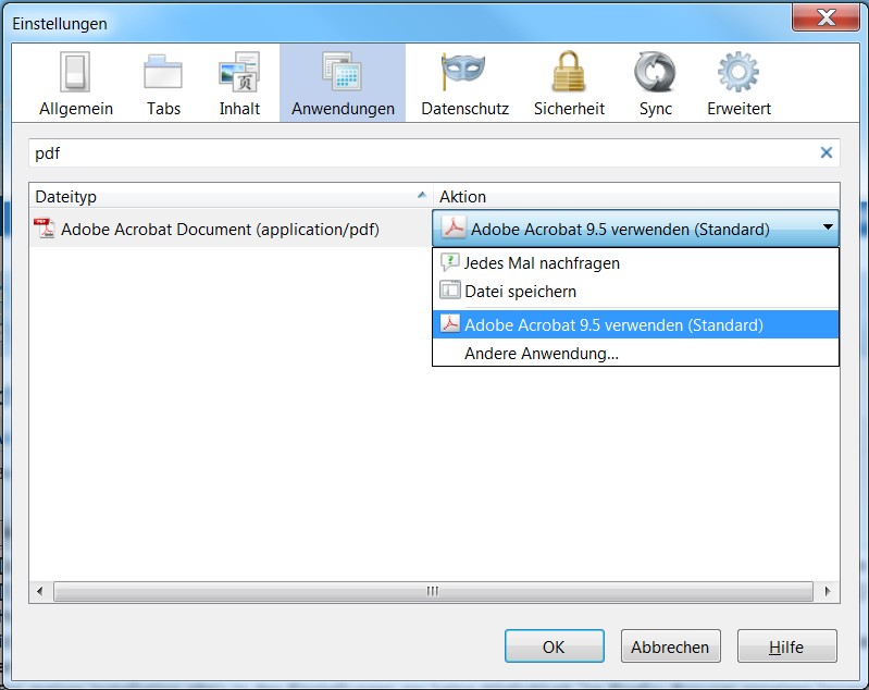 Zitat von BoersenfegerSchaue in den Einstellungen von Firefox auf die Registerkarte "Anwendungen", stelle dort bei Portable Document Format (PDF) "im Firefox-Browser anzeigen lassen" bzw. "Vorschau in Firefox" ein